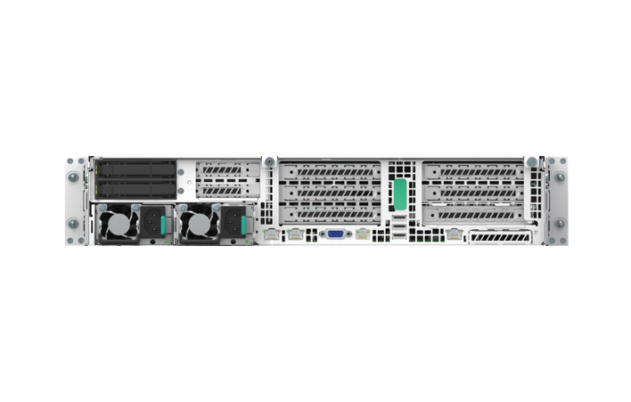 • 支持 2 个全高全长双宽 PCI-E ×16 插槽,4个PCI-E×8插槽,2个M.2插槽,以及1个专用OCP端口